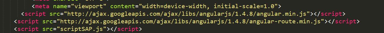 All the above code is written in a JavaScript file, this .js file included in a <script> tag in HTML page in which  angularJS  and angularJS-route is imported. This can be done as below-